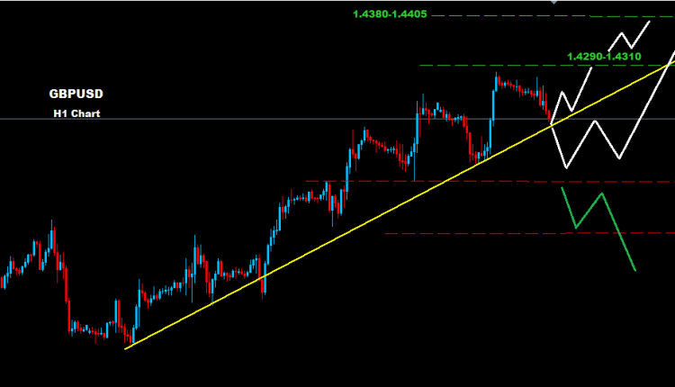 كما نرى على الرسم البياني فان السوق يمتلك اكثر من سيناريو للتداول حيث وطالما السوق مستمر بالتداول فوق مستويات الدعم للترند الصاعد 1.4190 فان الصعود سيستمر باتجاه مناطق 1.4405-1.4380