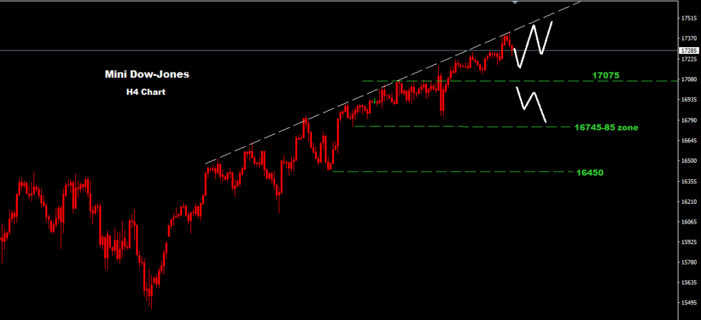 طالما السوق مستمر بالتداول فوق مستويات 17075 فان الترند الصاعد سيستمر مع مزيد من فرص الاسعار العليا باتجاه مستويات 17500