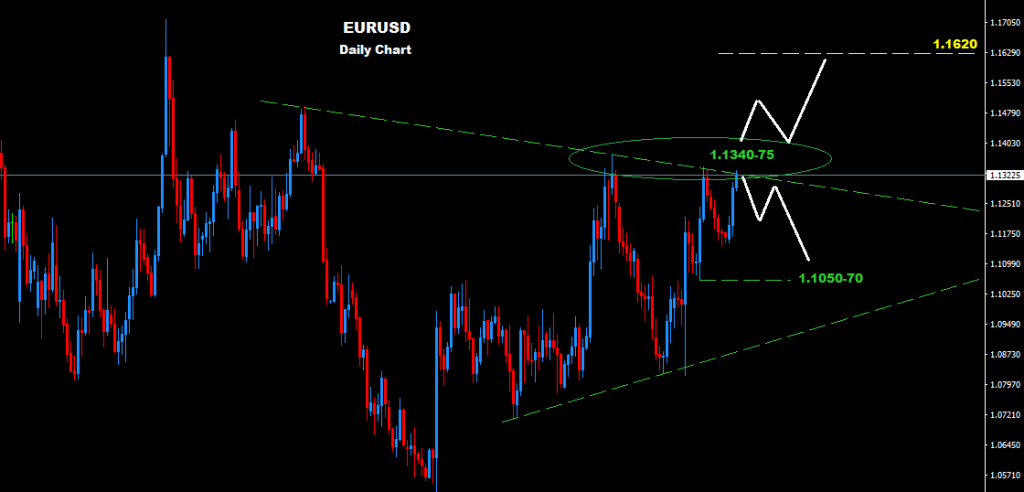 فوق مستويات 1.1375 فان السوق قد يدخل ضمن نطاق موجه صاعده جديده قد تدفع بمزيد من الارتفاع نحو مستويات 1.1620