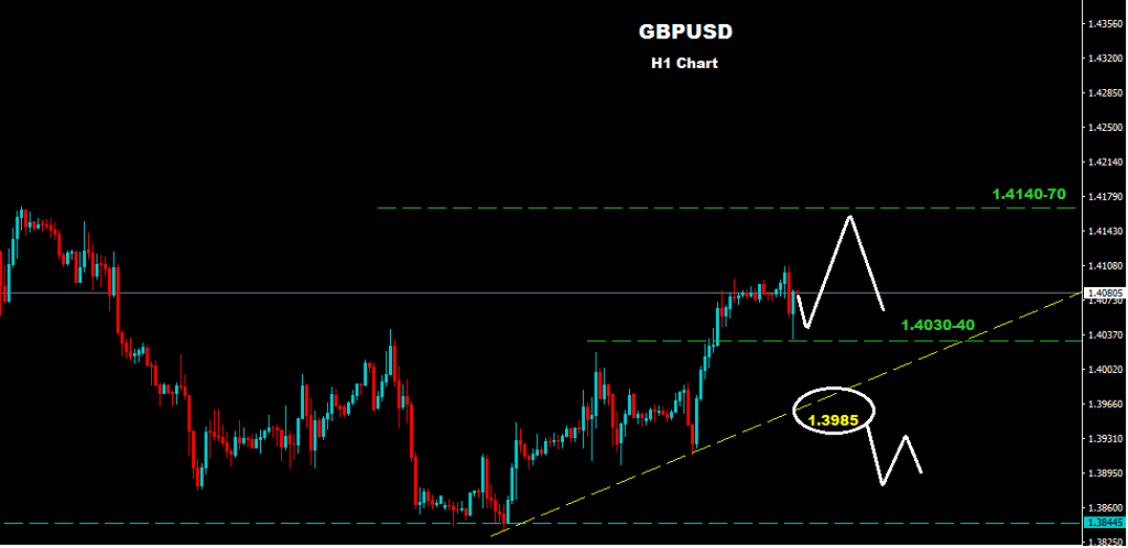 short-run support at 1.4030-40 zone which we expect market to hold for another advance toward 1.4140-70