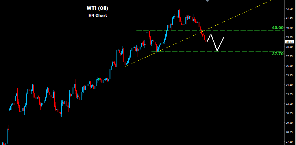 as we see over the chart, market managed to fell below our support 39.80-40.00 where we advised before that below this zone farther drop may hit toward 37.70 zone