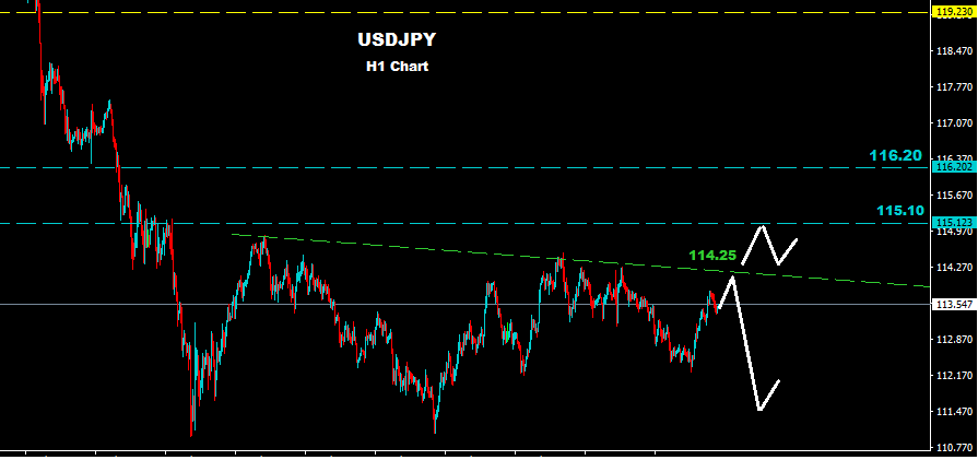 Market managed to rebound almost from 112.15 support level while market still facing resistance trend line at 114.25 zone