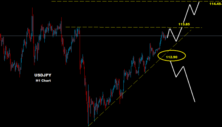 نجح السوق بضرب اسعار فوق مستويات 113.30 مما ساعد على الدفع بمزيد من الارتفاع حيث سيواجه السوق مستويات مقاومه على اسعار 113.85 و 55-114.45 كما نرى على الرسم البياني
