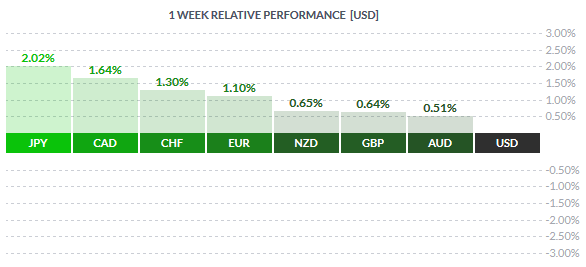 The US Dollar closed the week as the weakest currency led by the FOMC meeting which was more dovish than market expectations. With only two rate hikes projected for 2016, the markets saw the Greenback ease across the board. The Yen was the top performer, gaining 2.02% for the week as the BoJ’s meeting saw no changes to monetary policy but at the same time signaled potential easing bias at the next meeting. The Canadian dollar was the second best currency, rising 1.64% for the week as broadly better than expected data and rising Oil prices kept the CAD well supported.