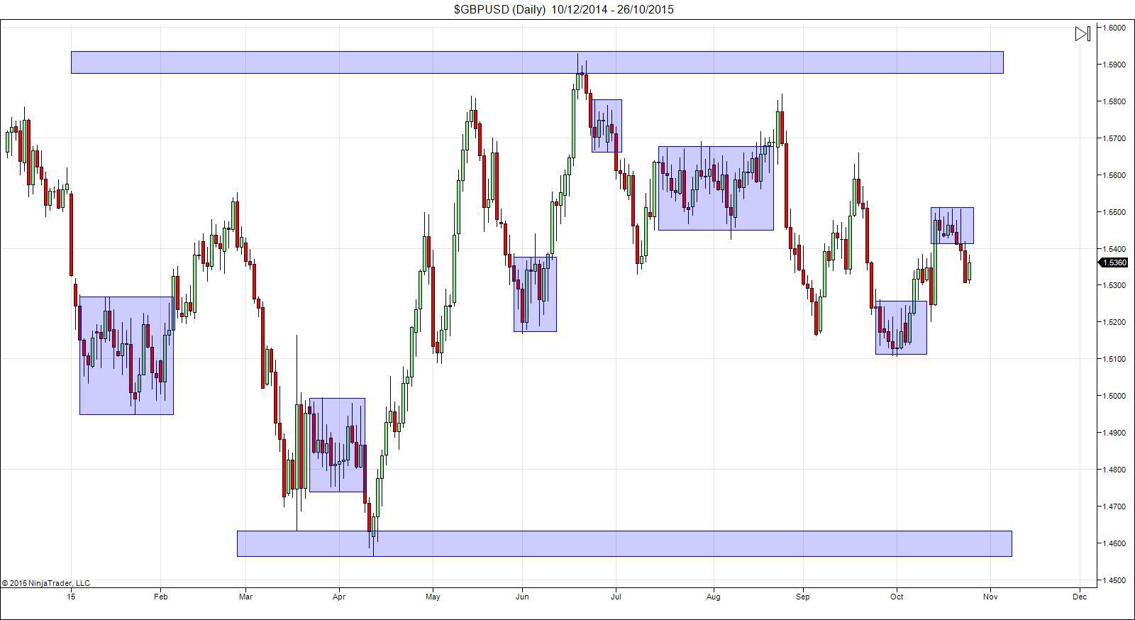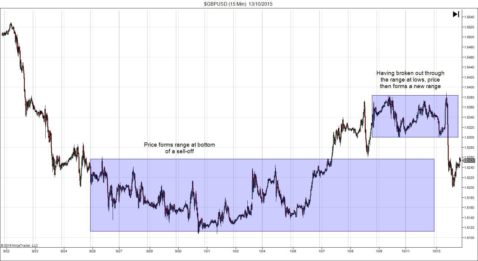 In the image above you can see how following a sell-off, GBPUSD forms a range at lows and then once it breaks out through the range high, price forms another range.