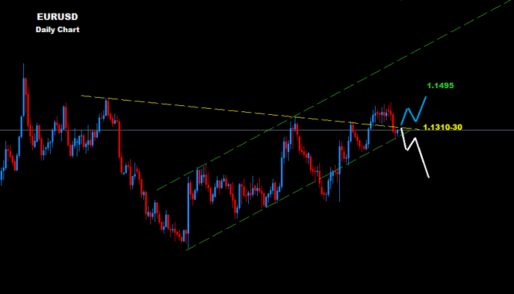 আগের চার্ট অনুযায়ী পুরাতন মাধ্যম চ্যানেল সাপোর্ট থেকে পিয়ার ঊর্ধ্বমুখী সাপোর্ট ছিল এবং এটি দৈনিক ১.১৩১০-৩০ উপরে বন্ধ ছিল,অন্যদিকে ইউরো তার শক্তিশালী অবস্থান থেকে অতিক্রম করে ১.১৪৯৫ জন আসতে পারে বলে ধারনা করা হচ্ছে।