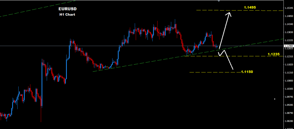 অন্যদিকে মার্কেট যদি ১.১২৬০ নিচে থাকে তাহলে এটি পরিবর্তন করে পরীক্ষিত ভাবে ১.১২৩৫ সাপোর্ট আসতে পারে(বড় ধরনের তথ্য)আবার মার্কেট যদি এই সাপোর্ট অবস্থান করে তাহলে এটি নিম্নবর্তীতে পরিবর্তন করে মার্কেট ১.১১৫০ এবং ১.১০৫০-৭০ জোন শুরু হতে পারে বলে আশা করা হচ্ছে।