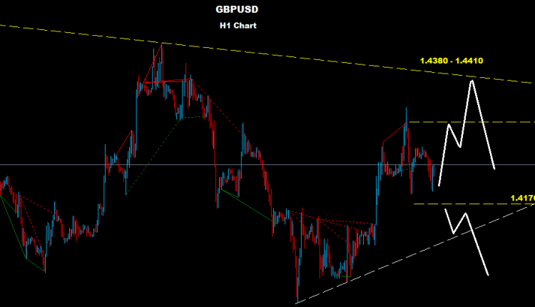 كما راينا على تداولات السوق يوم امس, فان الجنيه الاسترليني تحرك ضمن نطاق منطقة التداول المقترحه 1.4180 – 1.4380