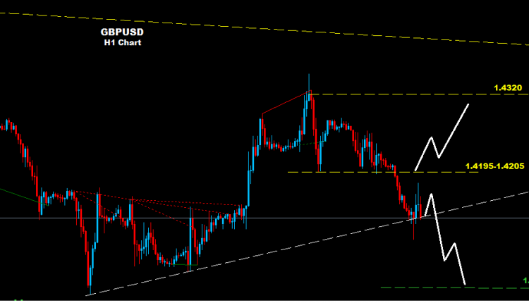 فوق مستويات 1.4205 فان السوق قد يستعيد القوة الشرائيه عليه نحو مستويات 1.4320