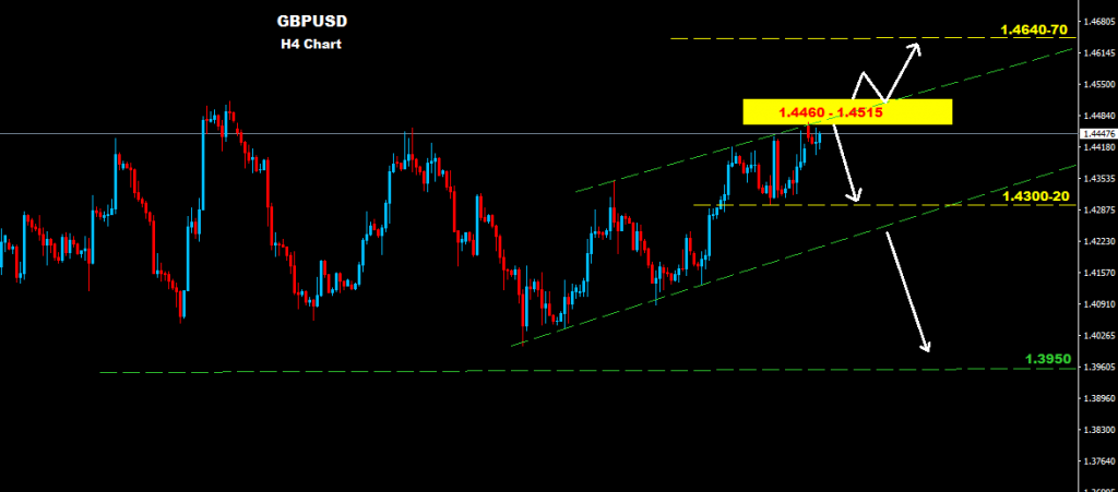 ستعتبر منطقة (1.4460 – 1.4515) كمنطقة مقاومة حيث وطالما السوق مستمر بالتداول تحت هذه المنطقة فان ضغوط الهبوط قد تعود للتاثير على السوق للتوجه لمنطقة الدعم 20-14300