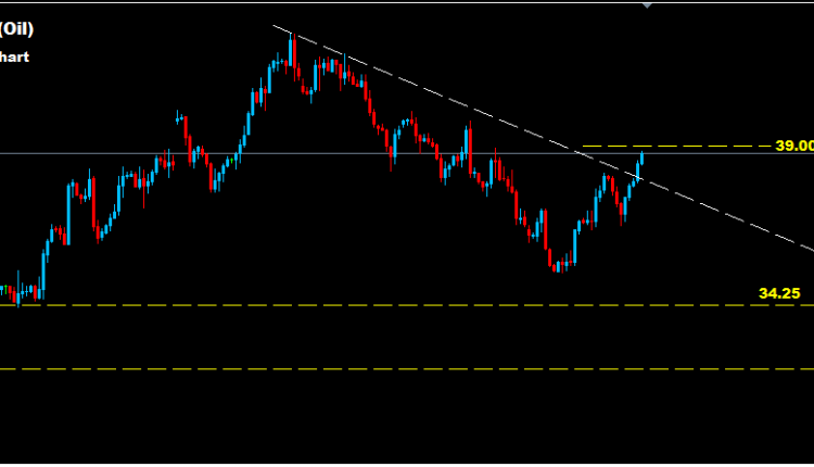 as we see over the chart , Oil managed to break above downtrend line where now heading to test 39.00 zone