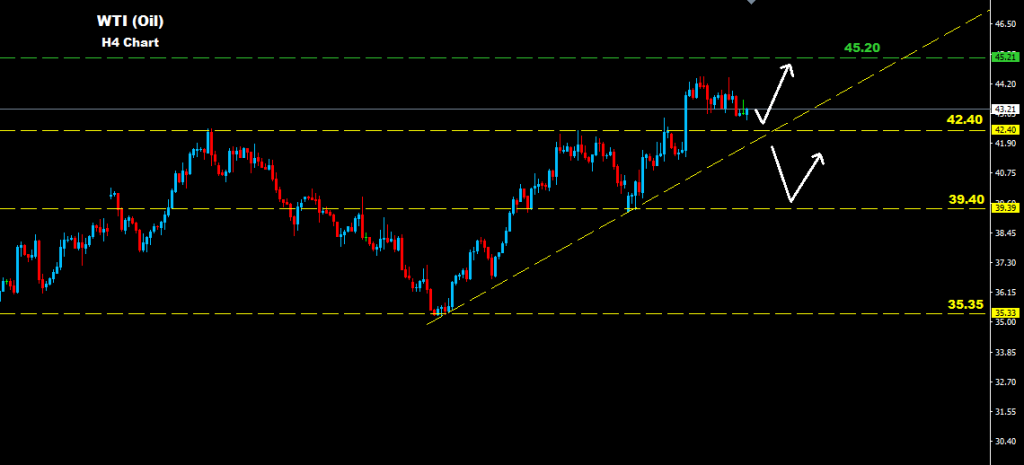 طالما السوق مستمر بالتداول فوق مستويات 42.40 فان الترند الصاعد سيستمر لضرب اسعار فوق مستويات 44.50