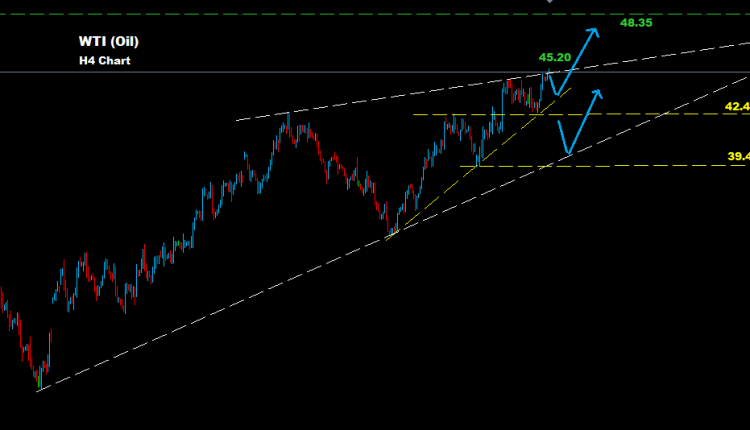 Market managed to hold support of 42.40 where managed to advance from there toward new high above 44.50 as we advised before