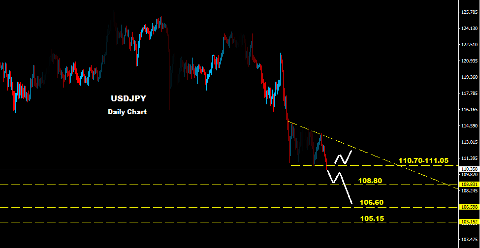 باية حال فان السوق سيبدا بالدخول بمرحلة الحذر تحت مستويات 110.00 حيث اعلن المركزي الياباني سابقا ان اي اسعار تحت مستويات 110.00 قد تكون مستويات ليتدخل بها المركزي الياباني لاضعاف عملتة الين وبذلك على المتداولين اخذ الحيطة والحذر بتداولاتهم تحت مستويات 110.00
