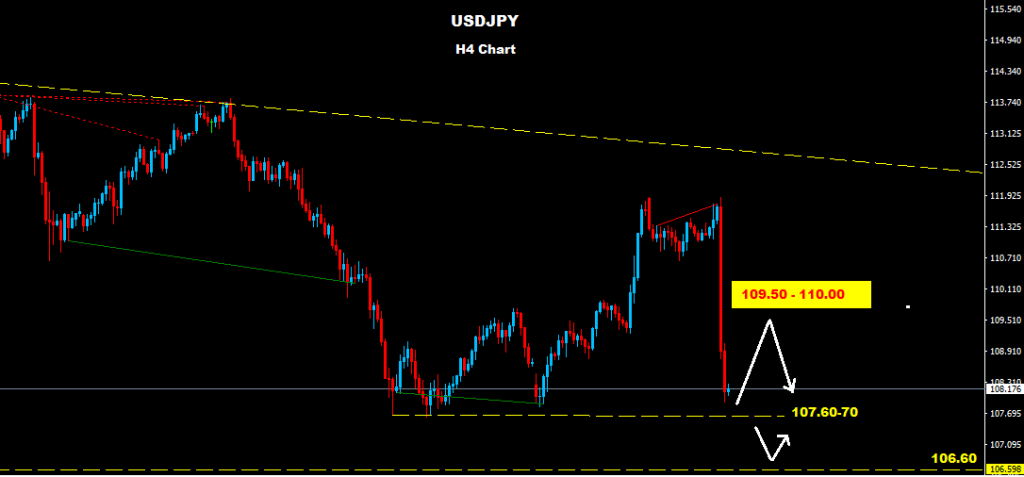 market still facing the old support zone 107.60-70 where as long as market holding above this zone a rebound correction may hit the market toward 109.50-110.00 zone before resume drop