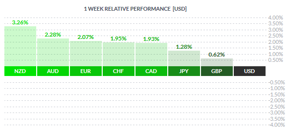 The weaker Dollar sent the commodity-linked currencies higher over the week. The Kiwi was the top currency, rising over 3.26% in the week followed by the Australian dollar. However, concerns remain if this current rally in the commodity-linked currencies is justified given how a stronger exchange rate for these currencies could hurt exports.