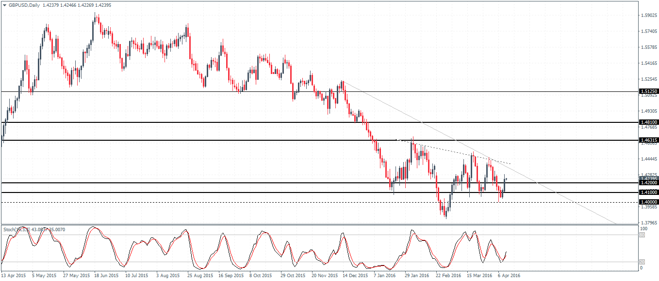 GBPUSD (1.42): Price action has been quite choppy with the downtrend showing signs of stalling. With the Stochastics closing with a higher lower against the lower low in prices, we can expect to see some upside momentum pushing prices to correct higher in the near term. However, the falling trend line needs to be broken in order to confirm an upside move in prices. With prices seen consolidating near 1.42 – 1.41 support, GBPUSD is more likely to move higher.