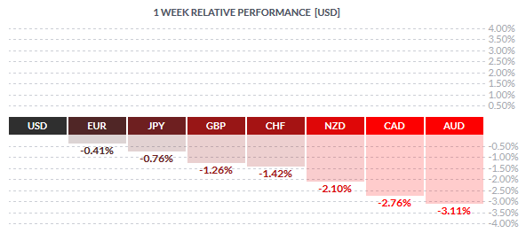 শুরুর দিকে মার্কিন ডলার দুর্বল থাকার সত্ত্বে এই সপ্তাহে শক্তিশালী হতে সক্ষম হয়েছে এবং মার্কিন ডলার সূচক অনুযায়ী ১৮ মাস ধরে নিম্নবর্তী ছিল।মধ্য সপ্তাহে ইয়েন থেকে ডলার শক্তিশালী পর্যায় পুনরুদ্ধার করতে চেষ্টা করছে ,যা এই সপ্তাহে সফলতা অর্জনের মধ্য দিয়ে শুরু হতে পারে এবং শক্তিশালী পর্যায় ফিরে আসতে পারে বলে ধারনা করা যাচ্ছে।