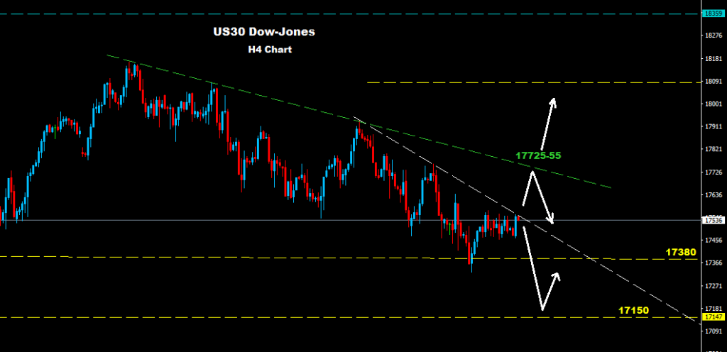 As we see over the chart, market facing resistance level for the downtrend line around 17550 where as long as market holding below this level farther drop still have chance toward 17150 zone