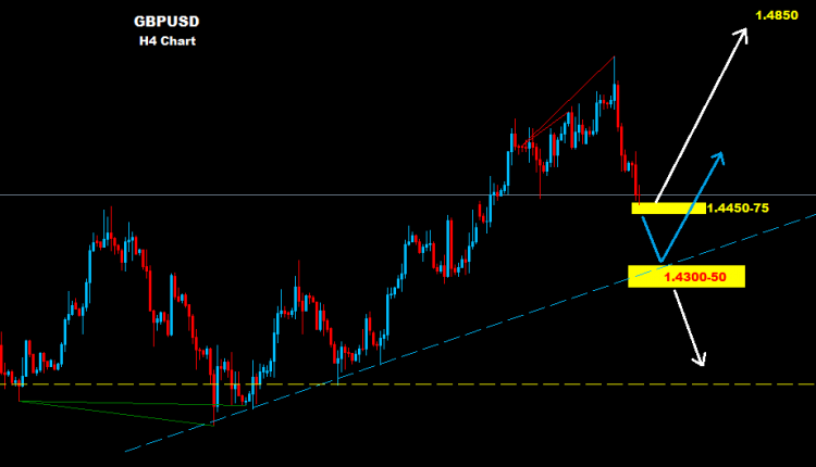 মার্কেট যদি ১.৪৪৫০ নিচে অবস্থান করে তাহলে ঝুঁকির সাথে পরিবর্তন করে ১.৪৩০০-৫০ জোন আসতে পারে এবং মার্কেট সংশোধনের মাধ্যমে পরিবর্তন করে সাপোর্ট ফিরে আসতে পারে বলে আশা করা হচ্ছে