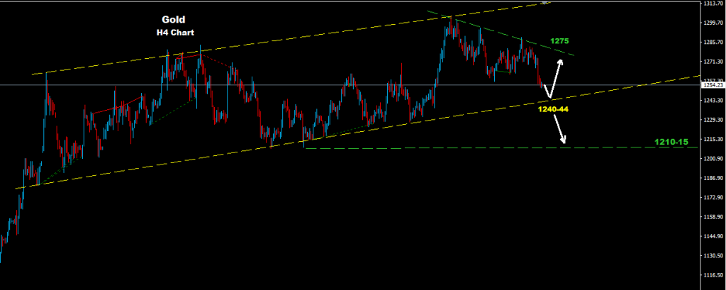 market managed to broke below our 2 supports that we mentioned previously while market now looking to test 1240-44 zone as support uptrend channel laying there