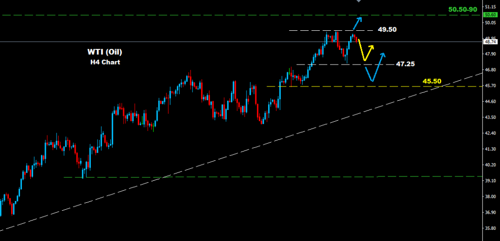 تحت مستويات 47.25 فان مزيد من التراجع التصحيحي بالاسعار قد يطرا نحو مراكز 80-45.50, فيما وفوق مستويات 49.50 توقع اختبار منطقة المقاومة 90-50.50