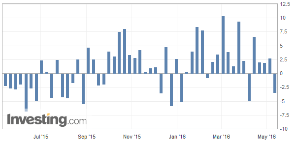A surprise drawdown in the weekly US crude oil inventory report released by the EIA yesterday sent WTI Crude oil prices to fresh 2016 highs. Oil prices closed yesterday at $45.99 after the weekly inventory report by the US Energy Information Administration showed that the weekly inventories fell 3.4 million barrels for the week ending May 6, reversing the previous week’s 2.8 million barrels in the build-up. Analysts were expecting to see a 0.1 million build up in oil inventories. The EIA’s report was in sharp contrast to the American Petroleum Institute’s weekly inventory report which showed that for the same period, US crude oil inventories rose 3.45 million reaching a high of 543.1 million barrels for the week reported. This report beat expectations of a 714k build up instead.