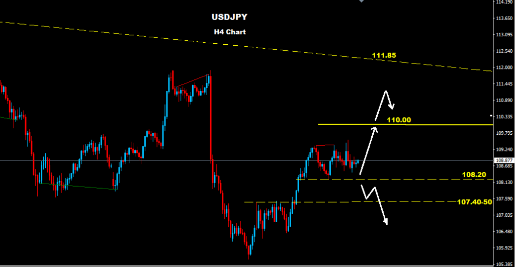 below 108.20 market will face support at 107.40-50 before continue drop toward 106.25-50 zone