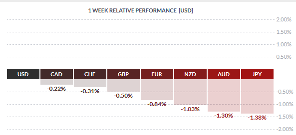 The US dollar emerged on the top of the charts this week supported largely by the verbal intervention threats from Japan. The dollar got a boost by Friday as retail sales posted the biggest monthly jump which helped the dollar to make strong gains on the day. The Canadian dollar was the close next which was supported mostly by Oil prices.