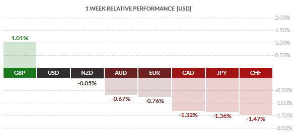 The yen and the Swiss franc were the weakest currencies last week as improved market sentiment saw the safe haven currencies give back the gains. Both the yen and the franc lost 1.36% and 1.47% respectively.