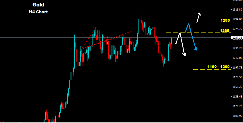 سيواجه السوق مستويات مقاومة على اسعار 1265 و 1285 حيث احدى تلك المستويات قد تدفع بهبوط تصحيحي نحو مراكز 1220