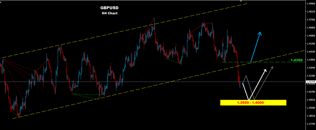 يواجه السوق الان موجه هابطه قد تستهدف مستويات منطقة 1.4000 – 1.3950