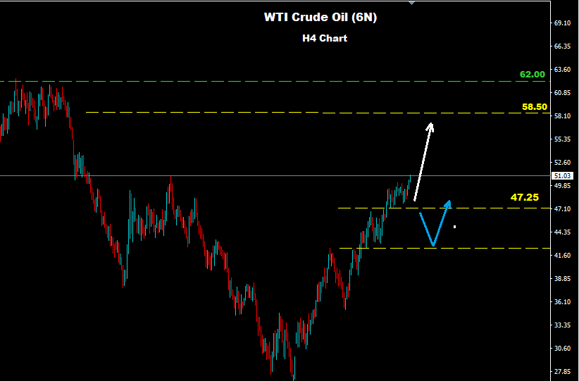 المدى القصير يظهر مستويات دعم على اسعار 47.25 حيث وطالما السوق مستمر بالتداول فوقها فان موجه صاعده قد تضرب السوق نحو الاهداف الجديده لمستويات 58.50