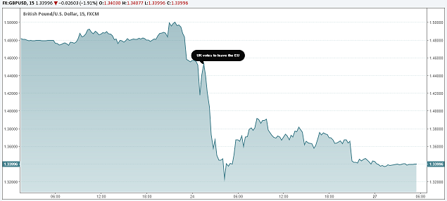 GBPUSD falls as UK votes to LEAVE EU