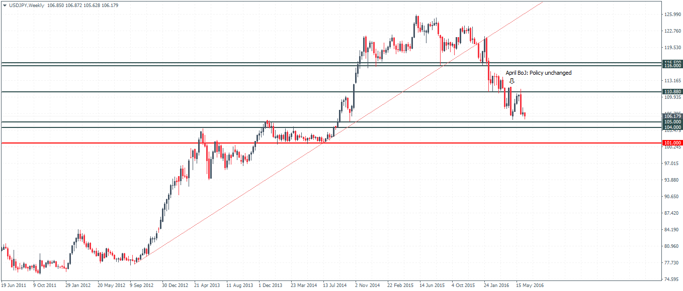 BoJ and Japan government officials have come out vocally in support of the yen every time the dollar fell closer to the 105yen level. While the Washington and Tokyo accuse each other of intervening in the currency markets and artificially keeping the exchange rate weaker, the yen’s rapid rise has hit Japan’s exporters this year. With the Brexit threat looming, many expect the BoJ to hold off policy easing this month, which raises expectations for July’s meeting as the most appropriate in terms of timing.