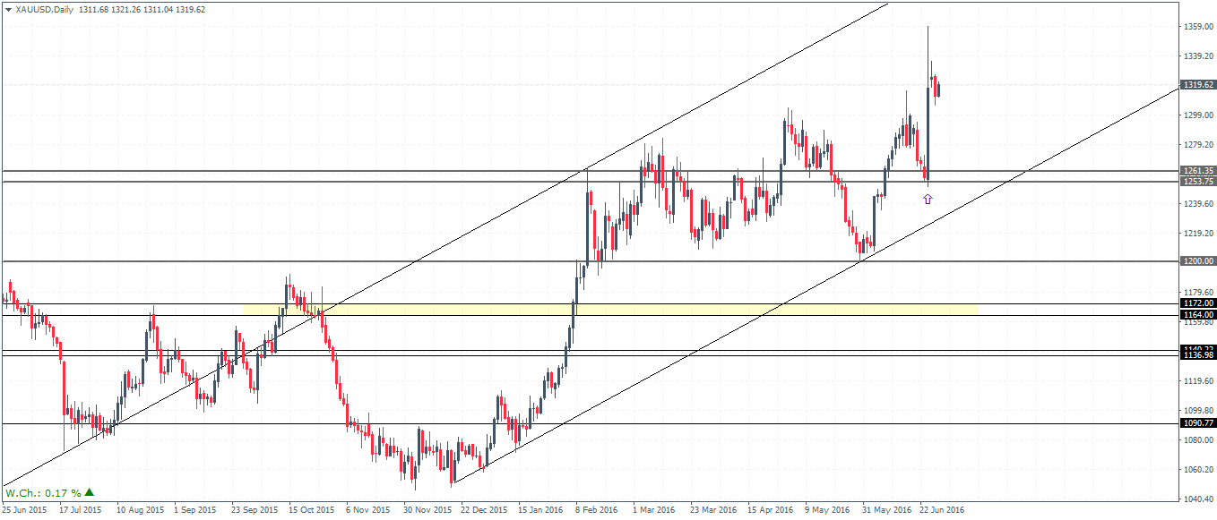 From last week’s technical outlook on Gold, we mentioned two potential scenarios. While the basic view was that gold prices were looking weaker below the $1300 handle, we also mentioned an alternate view (keeping the Brexit referendum in mind) pointing out that establishing support at $1260 – $1253 would see further upside.