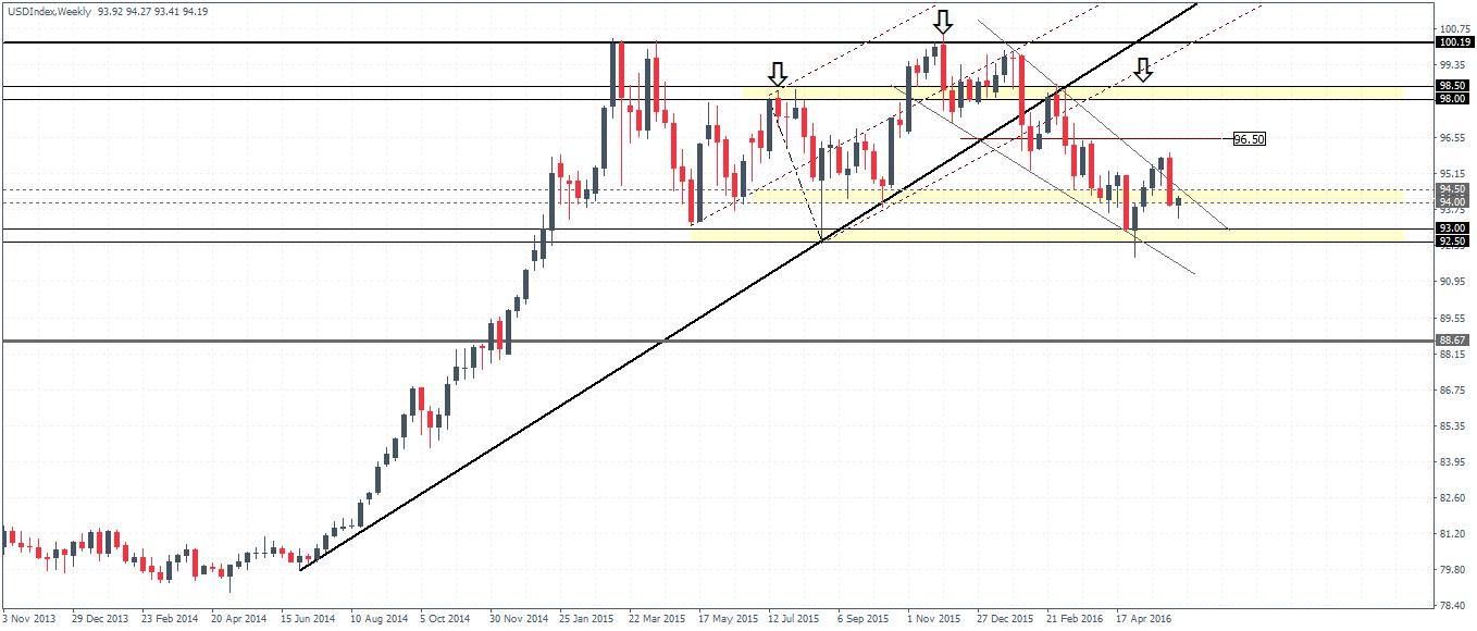 The ICE Futures US dollar index took a beating following last Friday’s monthly payrolls report. A surprisingly dismal jobs report with downward revisions to the past two months saw the markets discount a rate hike. The CME futures rate hike probability now stands a little above 1% for a rate hike at the FOMC meeting next week. Earlier this week, Janet Yellen’s speech at Philadelphia did not offer much. The markets deciphered the speech for what was not said and came to the conclusion that Fed will likely hold off from hiking rates next week. Be that as it may, pundits argue that with the UK referendum vote due in under two weeks time, the Fed would likely refrain from adding more volatility using a rate hike.