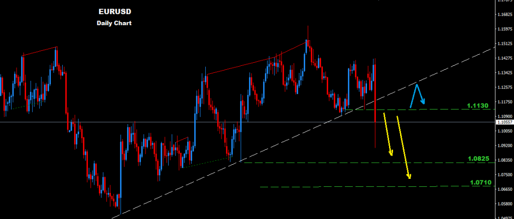 طالما السوق مستمر بالتداول تحت مستويات 50-1.1130 فاننا سنتوقع مزيد من الهبوط نحو مناطق 1.0825 فيما وتحت هذه المستويات سنتوقع مزيد من الهبوط باتجاه اسعار 1.0710