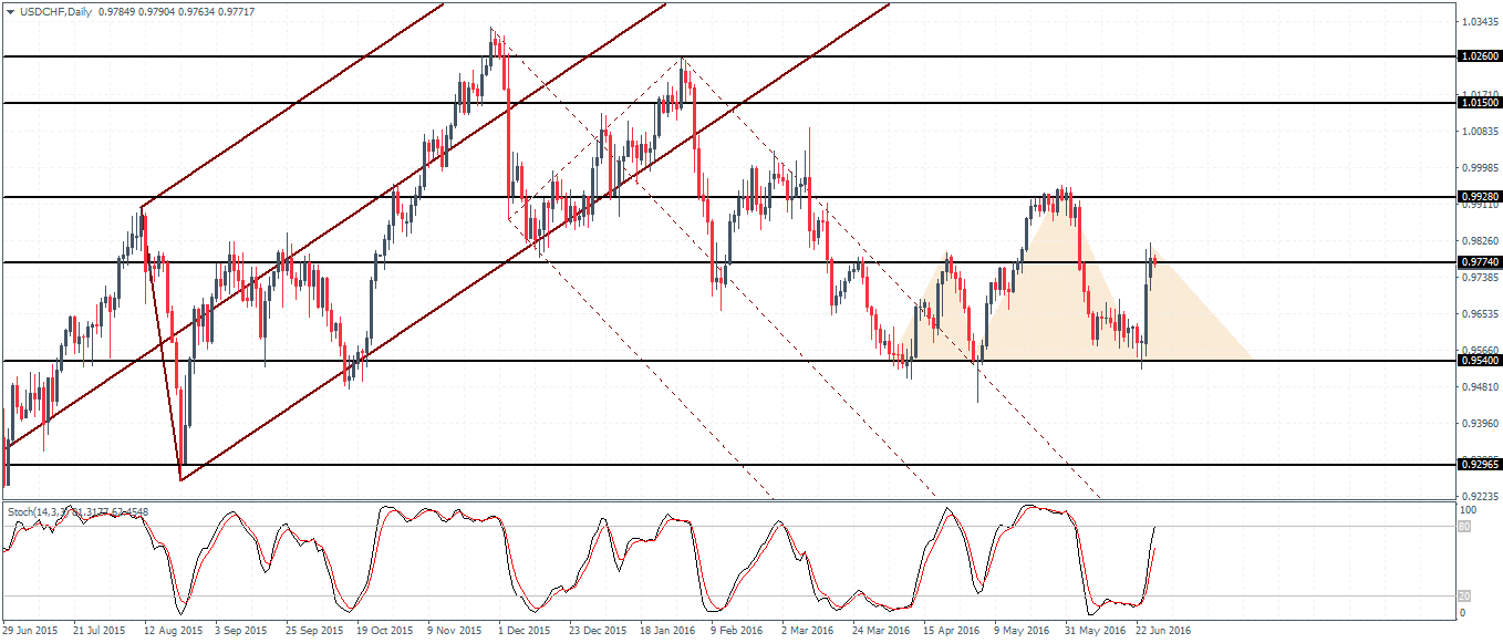 EURUSD (1.106) managed to find support at 1.105 – 1.10285 support level in the immediate aftermath of the Brexit referendum vote. The support level is seen to be strong for the moment and a bullish follow through here could confirm a near-term reversal. While the head and shoulders pattern remains in play, the retracement is seen extending the correction towards 1.123 – 1.1214 level which previously acted as support before giving way. A correction to this broken support for establishing resistance could see EURUSD post a decent recovery. As long as prices stall near this resistance level, we can expect a new leg of declines and to the downside, the current support at 1.105 – 1.1028 will be key. A breakout below this support could see EURUSD fall towards 1.081 – 1.0750 lower support.