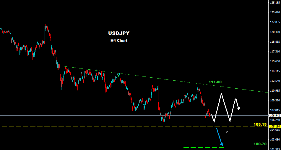 Market managed to sustain drop movement after US jobs report where managed to test 106.40 2 days ago
