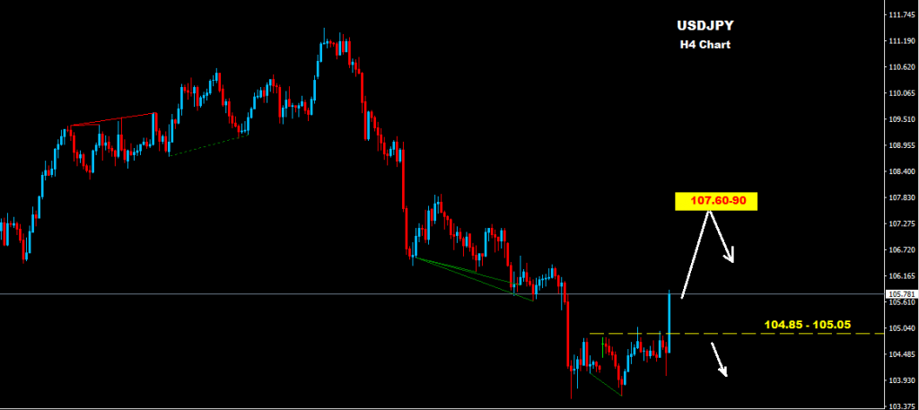 we advised before that above 105.50 market may open farther target toward 107.60-90 while support zone at 104.85-105.05