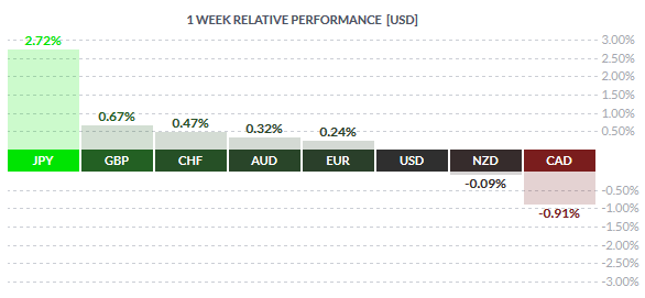 The Canadian dollar was the weakest this week, losing 0.91%. Oil prices were seen slipping sharply through the first part of the week, making the Canadian dollar weaker, besides the fact that inflation in Canada was fairly modest. The Kiwi was also weaker with mostly the US strength fluctuating the exchange rate.