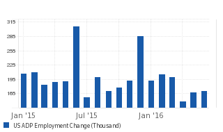 - In the US ADP report showed that private payrolls increased 172k, more than the expected 158k