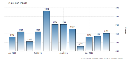 US home building saw a strong rebound in June, indicating that demand for housing continued at a healthy pace into the second half of the year. Data from the Commerce department released today showed that US housing starts increased 4.80% in June at a seasonally adjusted rate of 1.189 million, compared to a month ago. Demand for homes continued to rise with sales of both new and existing homes seen rising steadily since 2011. However, the housing market was under pressure as low inventory of new and existing homes weighed on further expansion in the sector. May’s housing starts numbers were revised lower to 1.135 million and was down from -0.30% as previously reported to -1.70%.