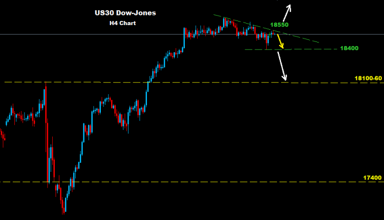 Market managed to test 18400 support zone yesterday where managed to head for rebound correction toward 18530-50 resistance zone