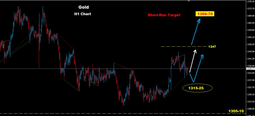 Market managed to hold trades below resistance 1347 so far while our short-run target still toward 1360-70 zone