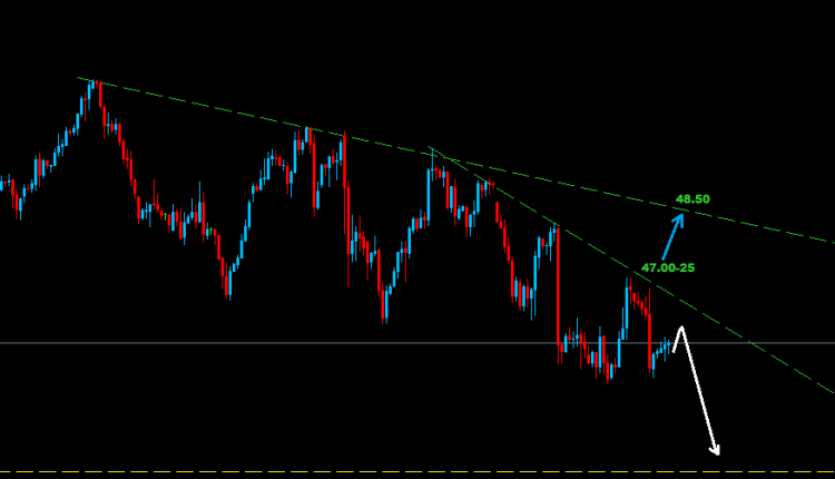 আমাদের পূর্ববর্তী চার্ট থেকে দেখা যায় যে যতক্ষণ মার্কেট ৪৬.৪০ এর নিচে অবস্থান করছে, নিম্নগামী চাপ ৪৪.৪০-৬০ এবং ৪২.৩০ তে অবস্থান করতে পারে।