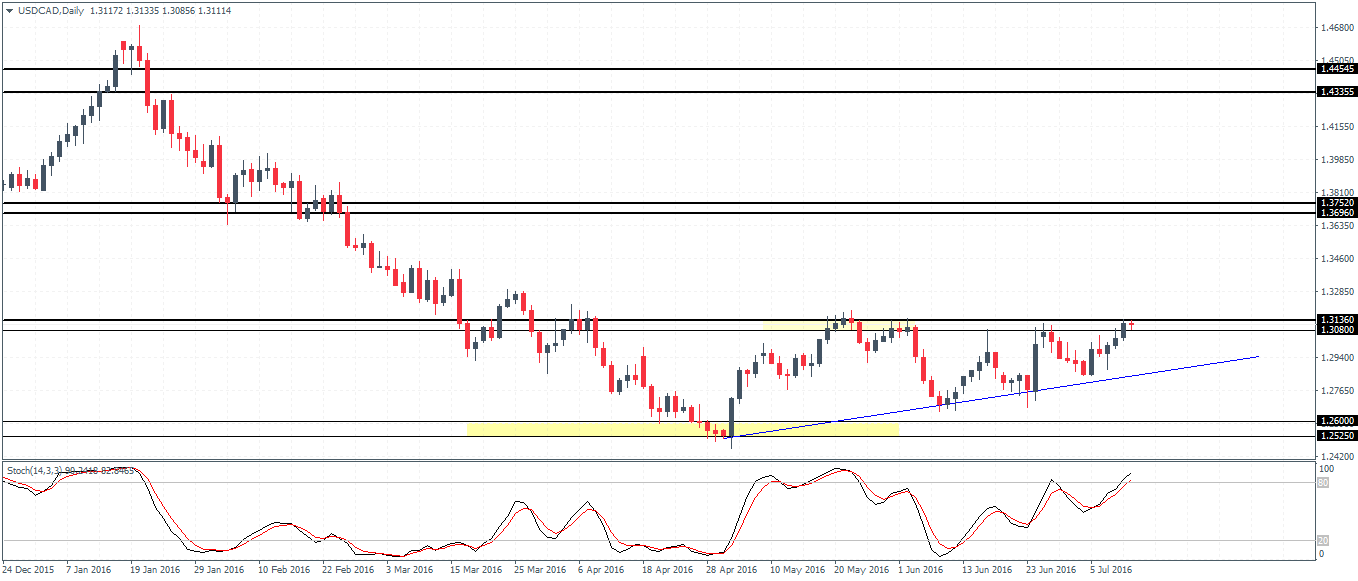 USDCAD (1.311): USDCAD is starting to show initial signs of a potential breakout from the 1.313 – 1.252 level it has established. USDCAD has been trading in this price zone since early March, and a breakout above 1.313 could signal further upside with gains seen extending to 1.3696 – 1.375 region. The bullish ascending triangle is seen on the chart further adds to this view.