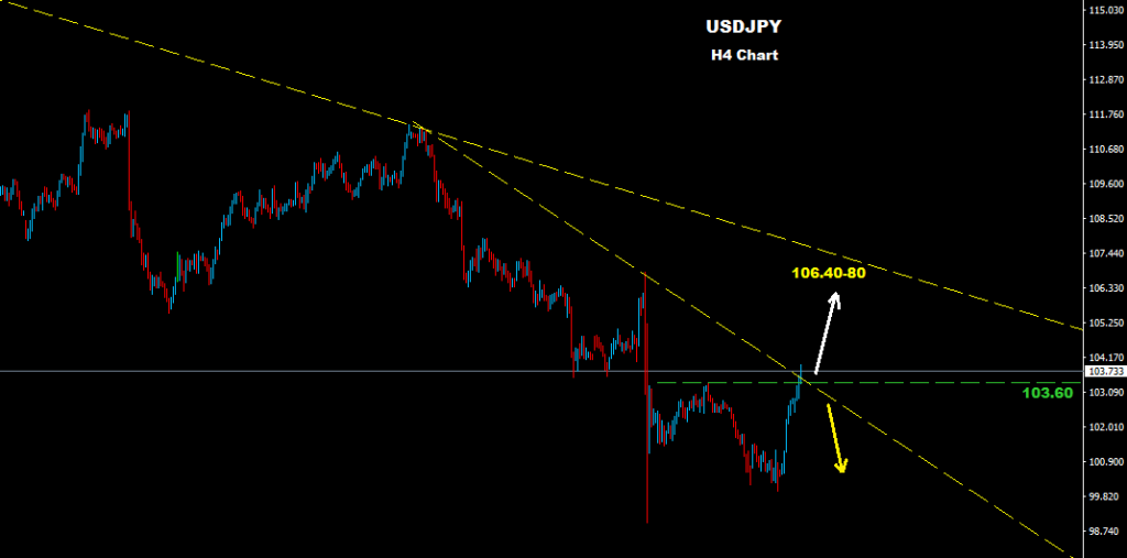 market managed to jump above 103.60 where we advised before that above this zone more advance will be expected toward 105.50 and maybe 106.40-80 zone