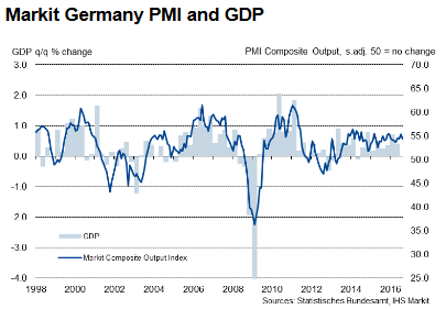 এ আগস্ট এ দেখা জাচ্ছে জার্মানির ইকনমির অবস্থা একটু ভালই দেখা যাচ্ছিল যেখানে মেনুফেকচারিং এবং সার্ভিস সেক্টর ধীর গতিতে এগুচ্ছে। অন্যদিকে বুধবারে দেখা যায় যে মার্কেট ফ্ল্যাশ মেনুফেকচারিং পি এম আই ৫৩.৬ এ নেমে আসে। পি এম আই ফ্ল্যাশ সার্ভিসটা যদিও একটু দুর্বল ছিল এর জন্য ইন্ডেক্স স্লিপ করে ৫৩.৩ তে নেমে আসে এ মাসে যা কিনা ৫৪.৪ ছিল গত জুলাইয়ে। যদিও এনালিস্টরা আশা করছিলো এ আগস্ট এ ইন্ডেক্স ৫৪.৩ হউয়ার।